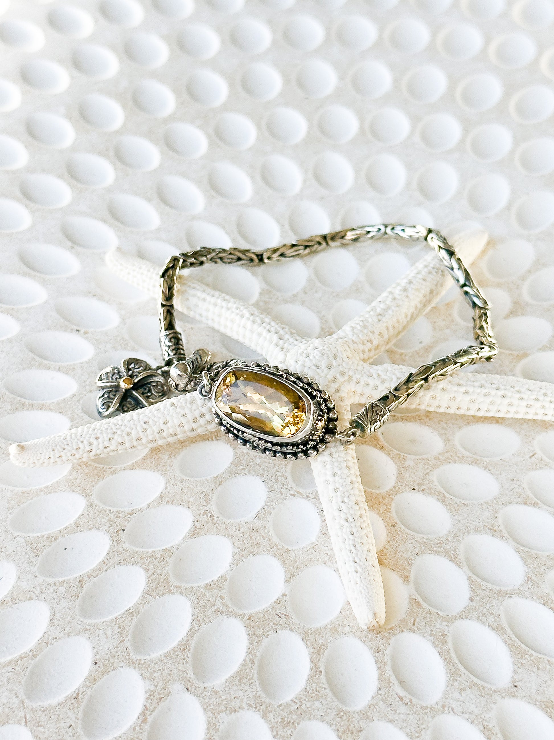Stunning Citrine & Sterling Silver Sampian bracelet handcrafted in the heart of Bali.