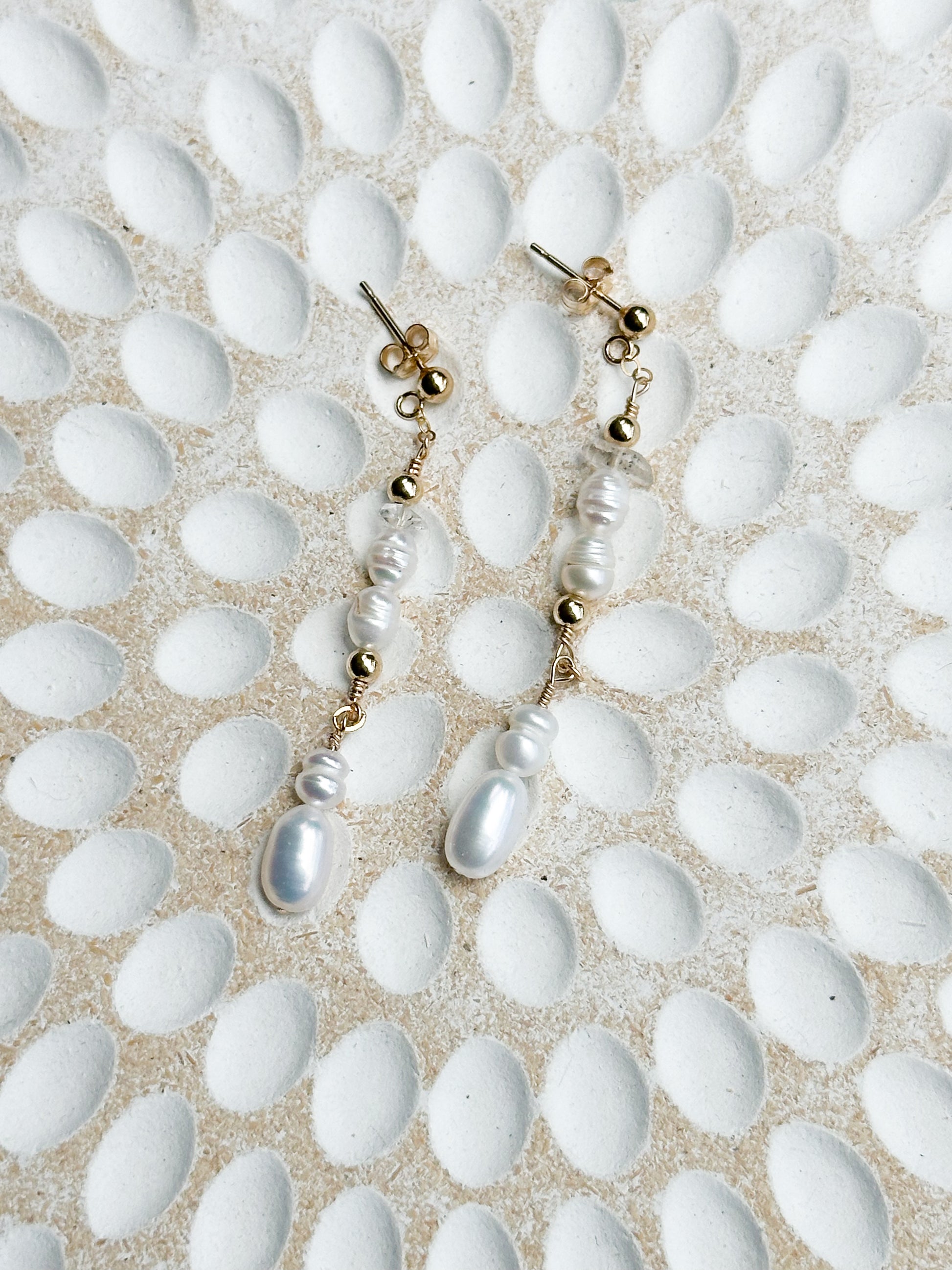 Stunning and classic, these elegant natural Freshwater Pearl drop earrings crafted by hand together with Herkimer Diamond Gemstones are the perfect accent to any special occasion outfit.