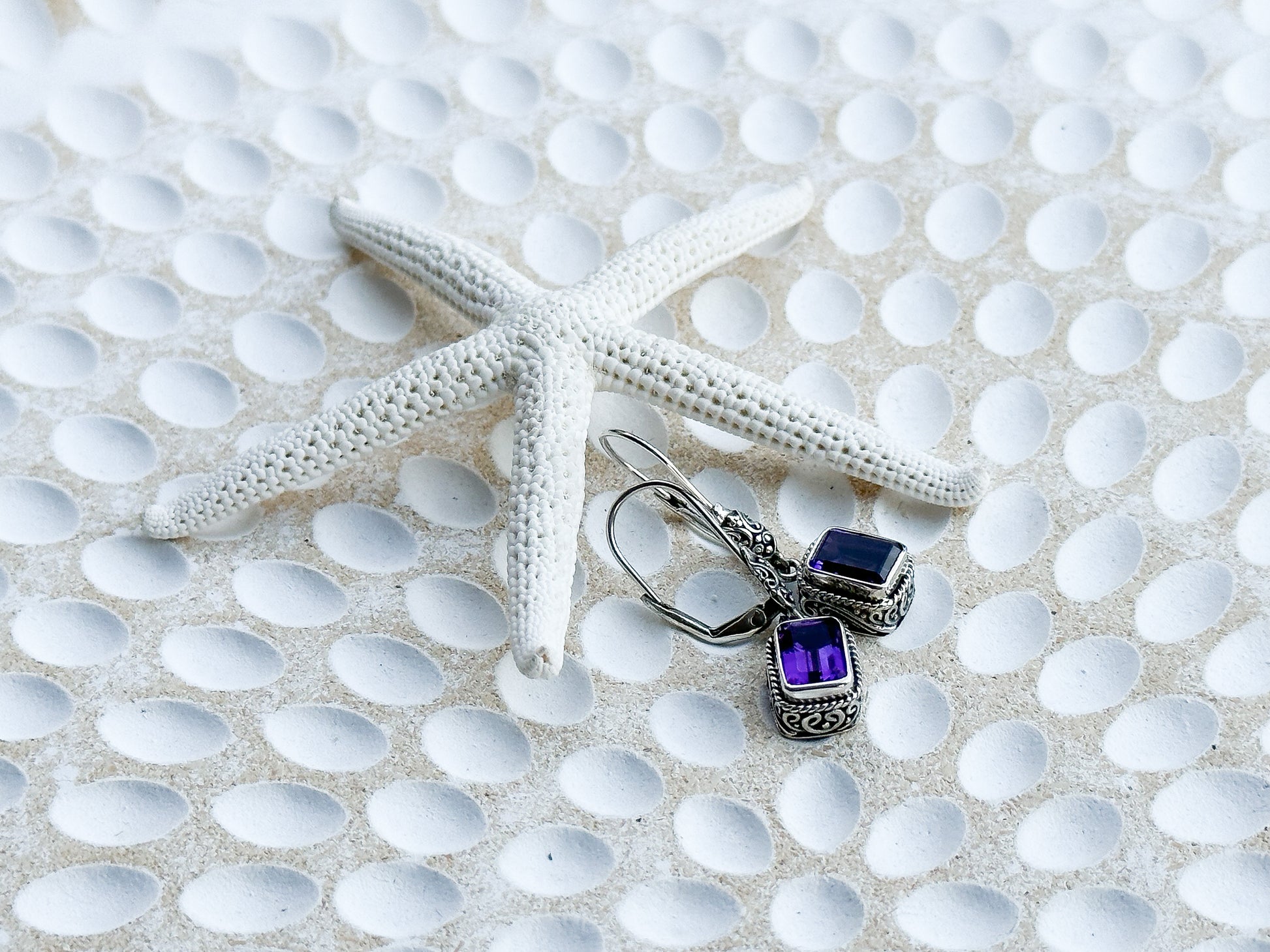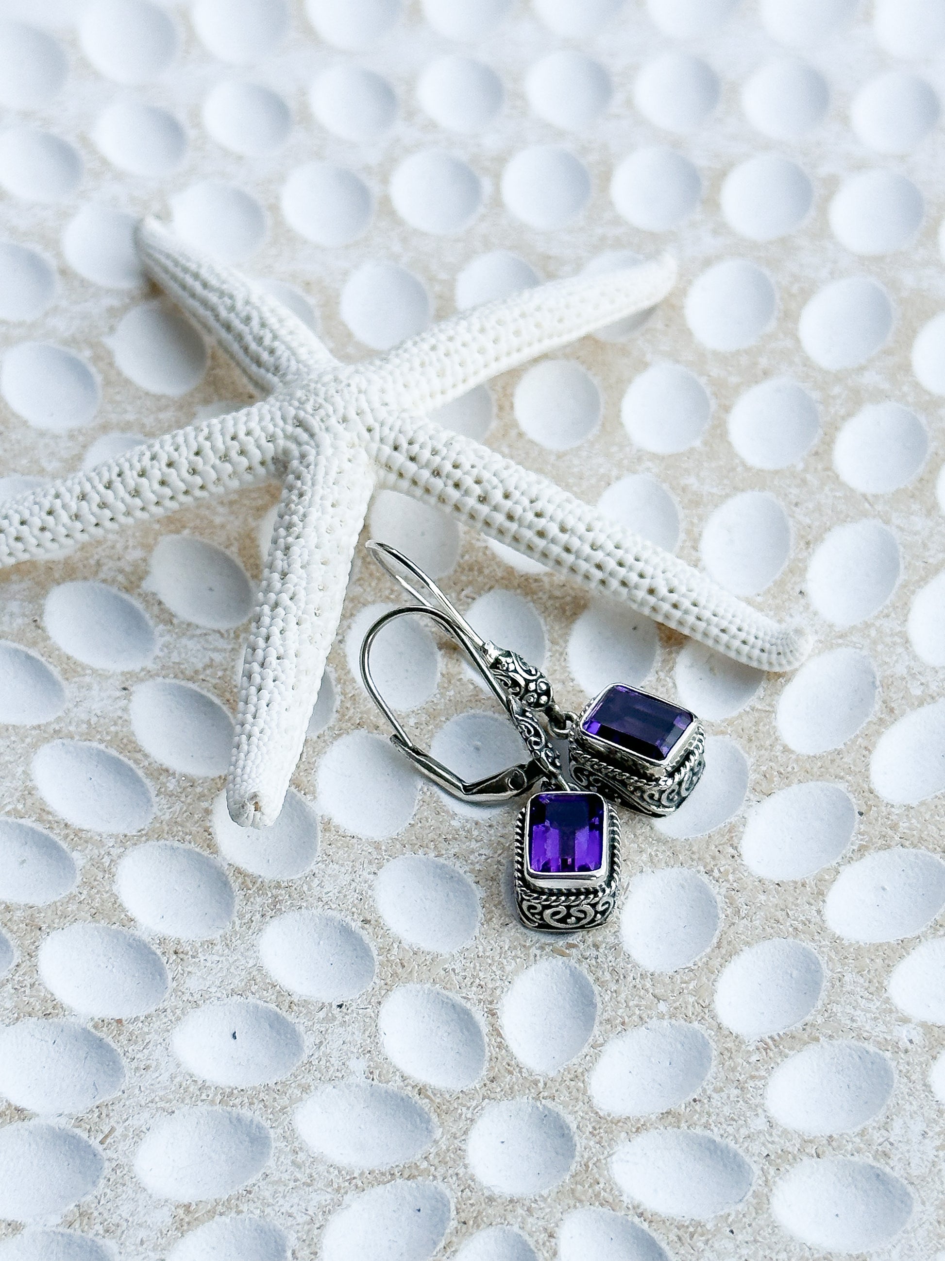 Stunning 925 Sterling Silver & Amethyst earrings handcrafted in the heart of Bali