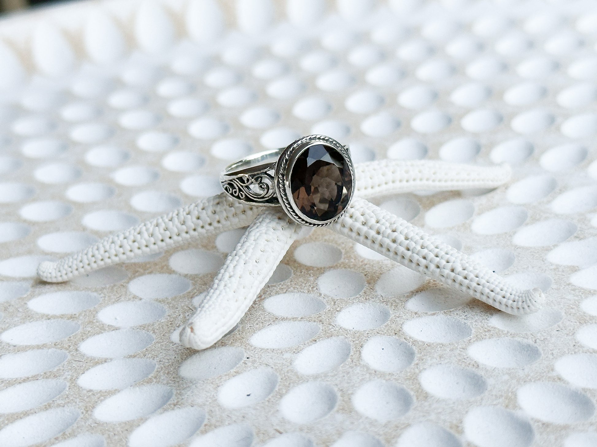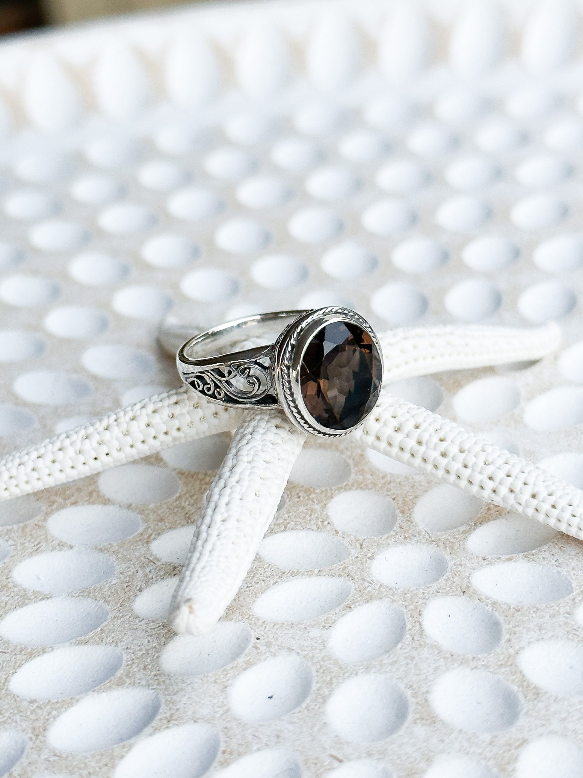 Gorgeous and unique 925 Sterling Silver & Smoky Quartz ring handcrafted in the heart of Bali.