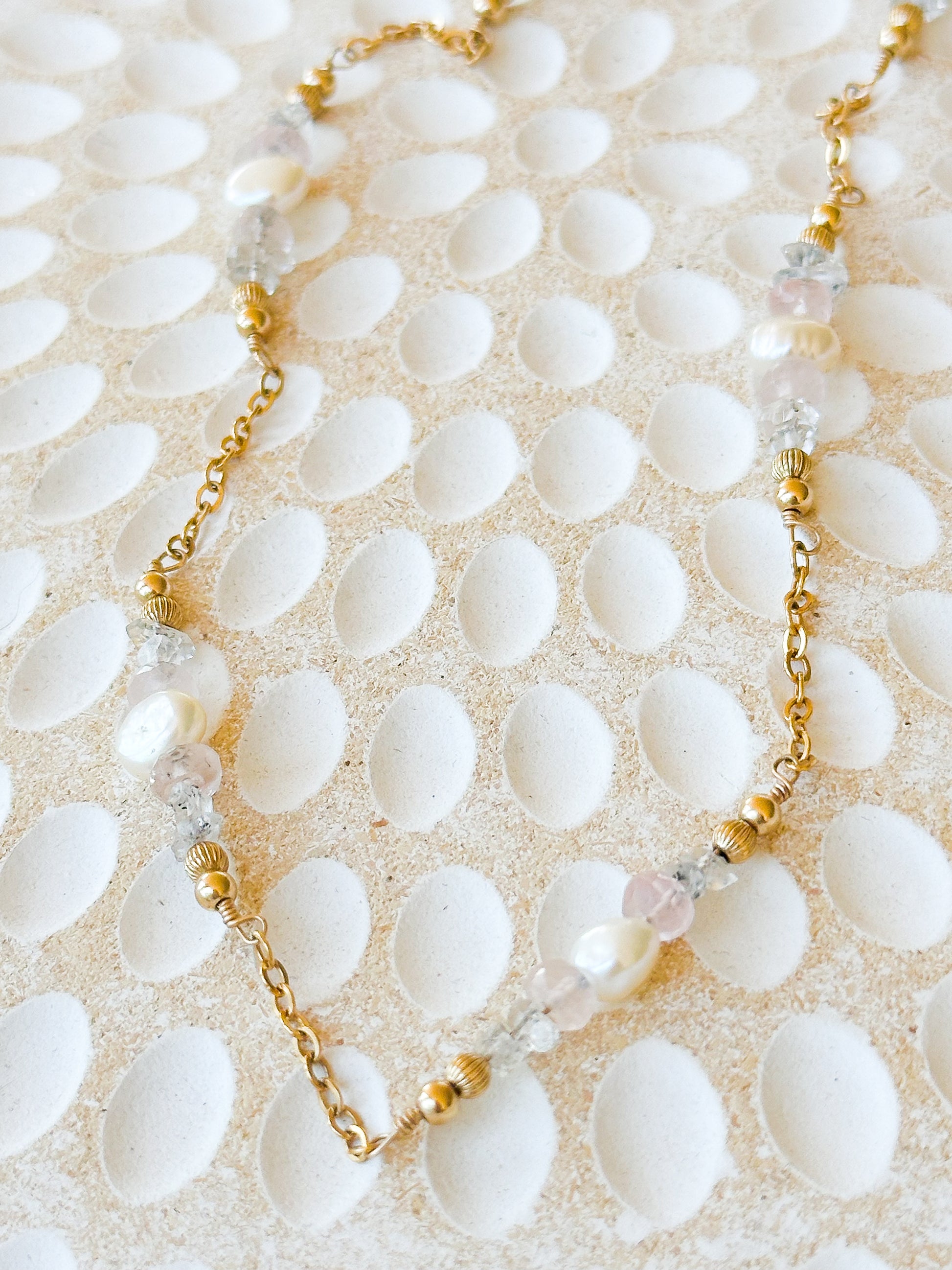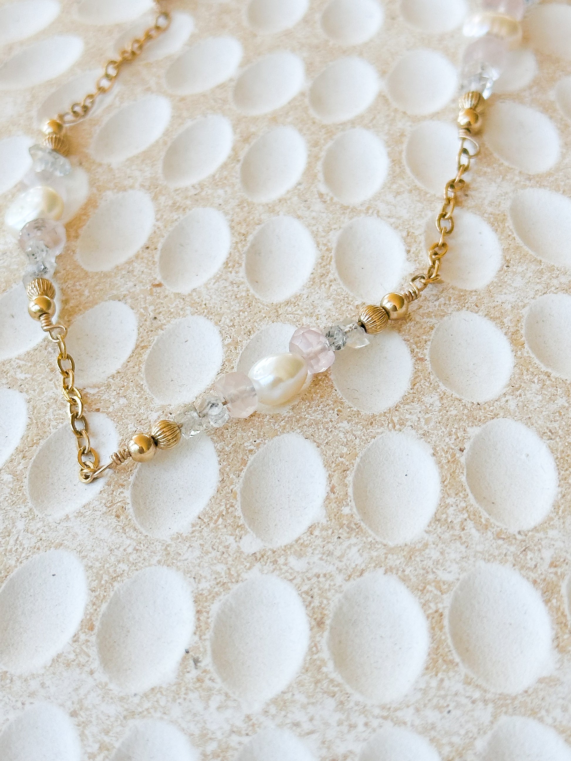 Titania 14K Filled Gold, Herkimer Diamond, Rose Quartz & Genuine Pearl Necklace