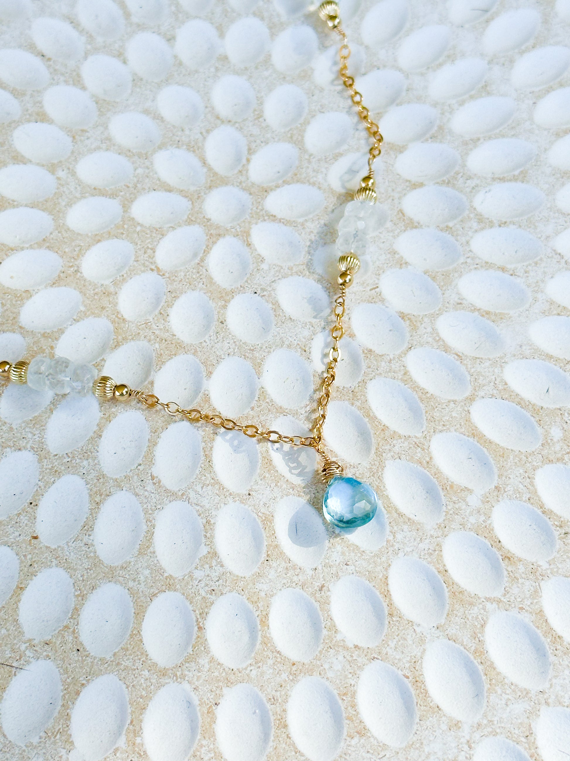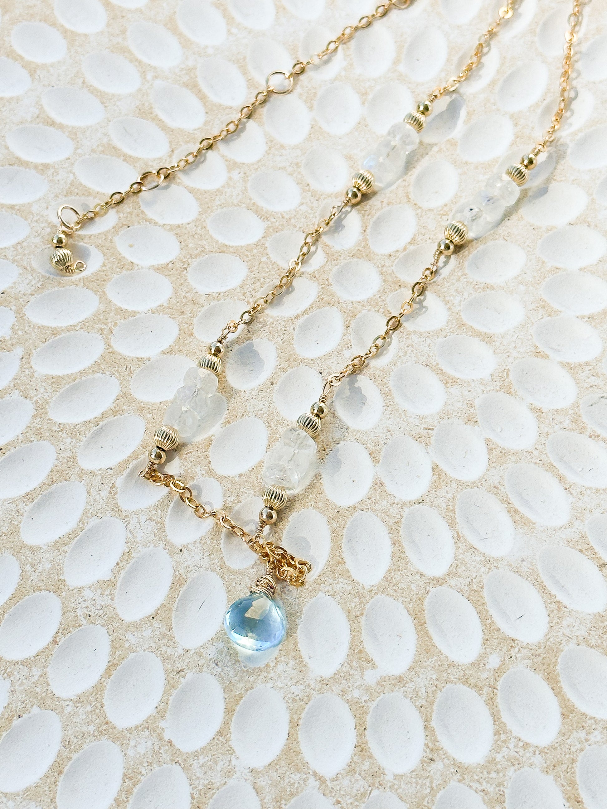 “Silent Heart “ Blue Topaz & Moonstone 14k Gold Filled Necklace